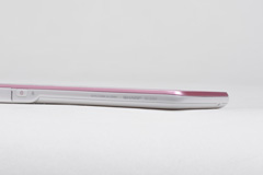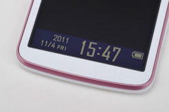 ボディは約4.2インチの大画面液晶ディスプレイを搭載していることもあり、幅が約65mmと、夏モデルのIS12SHよりも約1mm、IS03と比較しても約2mmほどワイドになっているが、厚さが最薄部約8.9mmとスリムになったため、手に持った印象は今まで以上に持ちやすくなった印象だ。特に、薄型化を実現しながらもボディ周囲の角をラウンドさせ、手にフィットするデザインに仕上げられているため、非常に持ちやすく、手になじむサイズ感に仕上げている。
