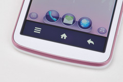 また、メインディスプレイが有効になっているときは、Android 搭載スマートフォンを操作するときに必須となる「メニュー」「ホーム」「戻る」の3つのキーがセンサーキーとして表示され、いずれもタッチでラクに操作することができる。物理的なキーを採用したモデルと違い、ボタンの周囲にホコリがたまったり、カバンの中に入れているときに間違ってボタンを操作してしまう心配もない。ちなみに、このセンサーキーの表示は端末を横向きに構えると、それぞれのアイコンも横向きに表示されるしくみとなっている。