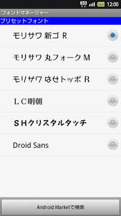 さらに、文字のフォントを好みで変えることもできる。プリインストールされている6種類に加えて、AndroidマーケットTM から好みのフォントをダウンロードして追加できる。女性にも配慮した楽しい機能ではないだろうか。