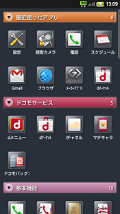 ホームアプリについては、docomo Palette UIとSHオリジナルホームを選ぶことができる。docomo Palette UIがグループ分けされたアプリをバーの部分をタップして、開いたり、閉じたりできるのに対し、SHオリジナルホームはページ単位にアプリがグループ分けされ、横方向にフリックすることで、グループを切り替えることができる。どちらも使いやすさが考慮されたホームアプリだが、見やすさではdocomo Palette UI、サクサク感ではSHオリジナルホームという印象だ。ちなみに、よく利用するアプリのショートカットをホーム画面に設定できるが、docomo Palette UIではアプリのアイコンをロングタッチすると、[ホームに追加]というメニューが表示され、そこから追加できる。SHオリジナルホームは画面下に各ホーム画面がサムネイルで表示され、そこにドラッグ&ドロップすれば、ショートカットを追加できる。どちらもわかりやすいユーザーインターフェイスだ。