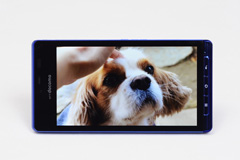 SH-01Dはディスプレイとして、4.5インチのHD液晶を搭載する。まず、4.5インチというサイズは、今回、NTTドコモから発表されたスマートフォンの中でもトップクラスに位置付けられる大画面で、ブラウザなどが快適に利用できることに加え、映像コンテンツの視聴もかなり迫力がある。