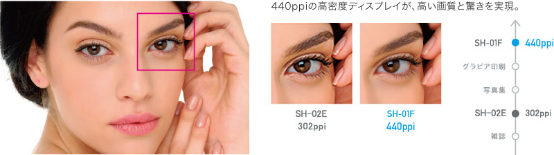 こうした状況に対し、シャープでは2012年11月「IGZO液晶ディスプレイ」を採用した「AQUOS PHONE ZETA SH-02E」、2013年5月にはIGZO液晶ディスプレイをフルHD化した「AQUOS PHONE ZETA SH-06E」を相次いで開発し、NTTドコモから市場に送り出してきた。そして、今回のSH-01Fにも5インチのフルHD対応IGZO液晶ディスプレイが採用されている。