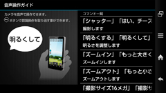 カメラ以外にも音声コントロールを活かした機能が搭載されている。たとえば、手がふさがっていたり、手袋をしていたり、手が離せないとき、SH-02Eの画面OFF時にディスプレイ面や背面をトントンと2回タップすると、音声ランチャーが起動し、さまざまな機能が利用できる。たとえば、2回タップし、ディスプレイの下側に装備されているLEDランプが点灯したとき、『Gmail(じーめーる)』と声で話せば、Gmailの画面をすぐに表示できる。画面ロックを設定しているときは、あらかじめ音声ロック解除のキーワードを登録しておくことで、2回タップ後、音声でロックを解除でき、あとは音声ランチャーに使いたい機能を言えば、機能を利用できるしくみとなっている。