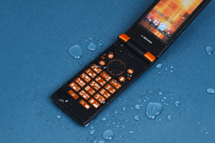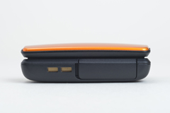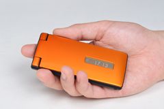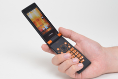 まず、ボディはスタンダードな折りたたみデザインを採用する。実際に端末を手に取ると、幅約49mmというスリムなボディが手になじみ、フィット感が非常に心地良い。最近はスマートフォンの大画面化が進み、ほぼ全機種がボディ幅が60mm以上という状況になっており、ケータイのスリムなボディサイズは非常に扱いやすく、かえって新鮮だ。ボディ側面には少し凹みも付けられており、折りたたみのボディを開きやすくしている。