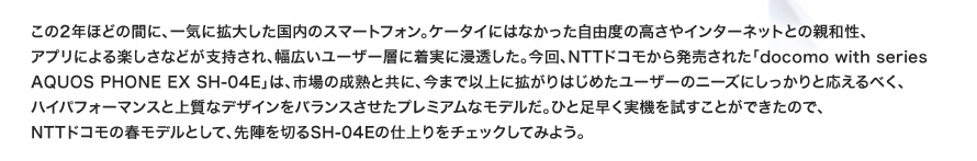 ■ docomo with series AQUOS PHONE EX SH-04E 製品情報(NTTドコモ)