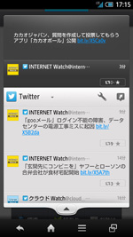 新たに追加された「Social Board」。アプリを起動しなくても、Facebook、Twitter、mixiの更新情報をチェックできる |