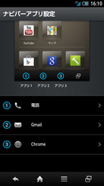 また、3つのシートの下には電話やメール、ブラウザのアイコンが並ぶナビバーが表示されているが、これも好みに合わせてカスタマイズでき、標準設定のナビバーと切り替えることができる。たとえば、spモードメールよりもGmailをよく使うので、ナビバーにGmailのショートカットを設定したり、音声通話を常に電話帳からはじめたいときは電話帳アプリのショートカットを登録しておくこともできる。このナビバーのカスタマイズとショートカットシートをうまく活用することで、SH-04Eのユーザビリティはかなり自分に合った環境を作ることができるはずだ。