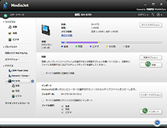 パソコンとの連携については、静止画・動画・音楽管理ソフト「MediaJet」が提供されており、別売のmicroUSB接続ケーブル 01でWindowsパソコンに接続し、SH-07Dに表示されたダイアログで[インストール]をタップすれば、自動的にドライバとアプリケーションがインストールされる。すでにパソコンに保存されている音楽や写真、ビデオなどが検索され、iTunesなどで音楽CDから取り込んだ楽曲もすぐに取り込むことができる。あとは転送したアルバムや楽曲、プレイリストなどを選べば、SH-07Dにすぐに転送することができる。また、予めWi-Fi接続などの設定をしておけば、パソコンにケーブルを接続しなくても、ワイヤレスチャージャーに置くだけで、ワイヤレスでパソコンと音楽データを同期させることもできる。