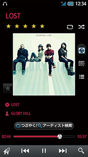 Music'n Playerには今聴いている曲をつぶやくことができるソーシャルサービスとの連携をはじめ、再生中にアーティストの情報をインターネットで検索したり、NTTドコモのMUSICストアをはじめ、各種音楽配信サービスが利用できる「PlayReady」にも対応する。