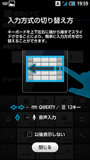 日本語入力では新たに「文辞技」と呼ばれる機能が追加されている。スマートフォンで文字を入力するときは、画面に表示されたソフトウェアキーボードを利用するが、入力する文字列によって、12キーとQWERTYキーと切り替えて使いたくなることが多い。たとえば、日本語入力は12キーのフリック入力に慣れたが、URLやメールアドレスなどのアルファベットはQWERTYキーがラクという考えている人も多いだろう。通常、このキーボードの切り替えは設定画面を表示し、キーボードの切り替え操作をする必要があるが、SH-07Dの文辞技ではソフトウェアキーボード上で、画面の端から端までを左右にスライドすることにより、12キーとQWERTYキーを切り替えられるようにしている。ソフトウェアキーボードのキーサイズは三段階に切り替えることができ、予測変換の変換候補も1行表示と2行表示を切り替えることができる。すでにスマートフォンに慣れているユーザーにとっても便利な機能と言えるだろう。