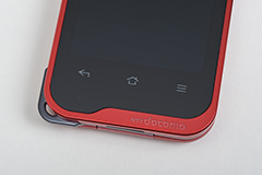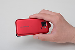 今回発売されたSH-07Dは、約3.4インチのフルワイドVGA対応NewモバイルASV液晶を搭載し、最近のスマートフォンにしてはかなりのコンパクトなボディに仕上げている。ボディ幅も折りたたみデザインのケータイとほぼ同等の約54mmに抑えており、女性のように大きくない手でも持ちやすいサイズに仕上げている。ボディの厚みの約11.9mm(最厚部:約12.2mm)も折りたたみデザインのケータイを閉じたときとほとんど変わらないサイズで、背面側の周囲の角に丸みを付けたデザインに仕上げることで、手にフィットするジャストサイズにまとめられている。ちなみに、背面側はラバー風触感塗装でマットに仕上げているため、指紋などの汚れも付きにくくなっている。