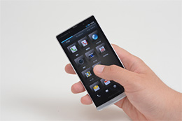 パフォーマンスに影響するハードウェアで、もうひとつ注目したいのがタッチパネルだ。タッチ操作が中心となるスマートフォンにとって、タッチパネルのレスポンスや動きは、全体の操作性にも大きく影響することになる。シャープは元々、PDA時代からタッチパネルを数多く手掛けてきたこともあり、さまざまなノウハウを持ち合わせているが、独自のダイレクトトラッキング技術により、指先にアイコンなどのグラフィックが吸い付くような動きを見せるほど、レスポンスと追従性に優れたタッチパネルに仕上げている。このサクサク感となめらかさは、NTTドコモのスマートフォンのラインアップにおいても間違いなく、トップレベルの仕上りと言えるだろう。