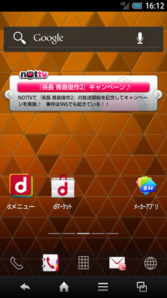 まず、ホームアプリについては、NTTドコモのスマートフォン標準の「docomo Palette UI」に加え、シャープが今夏から搭載している「Feel UX」もプリセットされている。Feel UXについては、別途、掲載しているレビュー記事を参照していただきたいが、ロック画面に相当するウェルカムシートからロックを解除すると、アプリケーションシート、ウィジェットシート、ショートカットシートの3つのシートで構成されたホーム画面が表示され、左右にフリックすることで、それぞれのシートを切り替えることができる。使いはじめたときは、アプリケーションシートからアプリを選ぶかもしれないが、慣れていくと共に、必要なアプリをショートカットシートに設定し、ウィジェットシートによく使うウィジェットをレイアウトすれば、スムーズに利用できるようになる。ちなみに、すでにAndroidスマートフォンを利用したことがあって、Android標準、もしくはそれに近いホームアプリを利用したいときは、「SHホーム」がGoogle Play(旧Androidマーケット)に公開されているので、そちらをダウンロードして、利用するのも手だ。