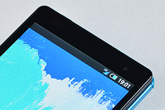 ところで、SHL21の外見、特に正面の写真を見てもらいたいのだが、他のスマートフォンに比べ、非常にスッキリした印象はないだろうか。今回のSHL21はパネル面の振動で音声を伝える「ダイレクトウェーブレシーバー」を採用しており、前面に受話口のスピーカーによる穴が空いていない、フラットなフェースに仕上げられている。受話口がないことはフラットで仕上りが美しいだけでなく、ホコリや水なども入る心配がないため、安心して使うことができる。また、受話口の位置を耳に合わせる必要がなく、そのままパネルを耳に当てるだけで、明瞭に通話ができるというメリットを持つ。ちなみに、本体には2つのマイクが内蔵され、音声と周囲の雑音を区別し、クッキリとした声を相手に伝える「くっきりトーク」も搭載されるなど、音声サポートの機能も充実している。