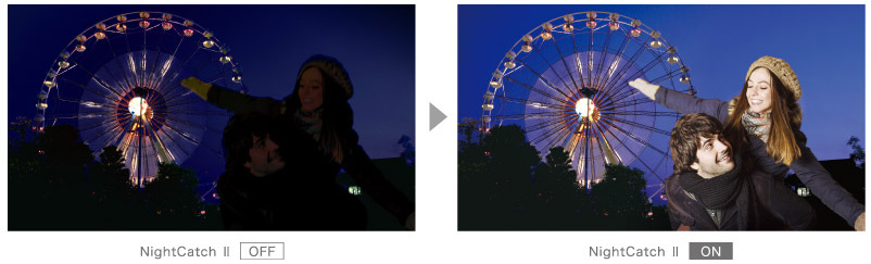 夜のシーンを明るく撮れるNight Catchがさらに進化。複数枚の合成で、人物と背景、両方明るく撮れるようになった
