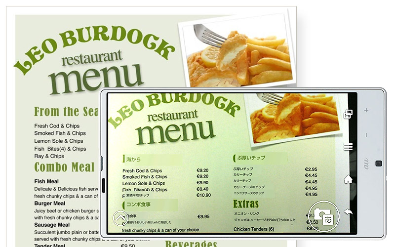 さらに、カメラを単純に撮るだけでなく、撮って何かに活かす機能として、「翻訳ファインダー」や「検索ファインダー」が搭載されている。「翻訳ファインダー」は他事業者向けの端末にも搭載されたことがあるが、カメラを起動し、ファインダー内に映し出された文字列の英語などを日本語に翻訳して、リアルタイムで元画像に重ねる形で表示できるものだ。検索ファインダーは同様のしくみを検索エンジンと組み合わせたもので、ファインダー内に表示されている文字列を指でなぞることにより、その言葉に関連する情報や画像を検索し、表示してくれるというものだ。
