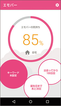 そして、こうしたコミュニケーションを重ねた結果、エモパーが現在、どういう状況なのかを表わす「エモパーの気持ち」という機能も用意される。パーセンテージで表示され、同じ画面にはエモパーが気にかけていることなどがいっしょに表示される。