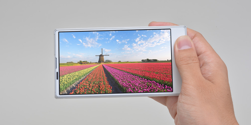 シャープ製スマートフォンのデザインとして、すっかり定着した感のある「EDGEST」(エッジスト)は、本体前面のディスプレイの上側と左右を狭額縁で仕上げることで、本体におけるディスプレイの占有面積を抑え、ともすれば「画面だけを持ち歩く」感覚を実現するデザインだ。