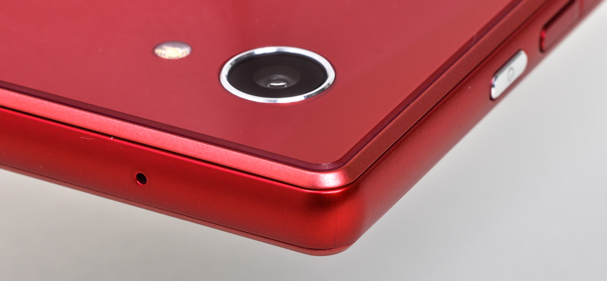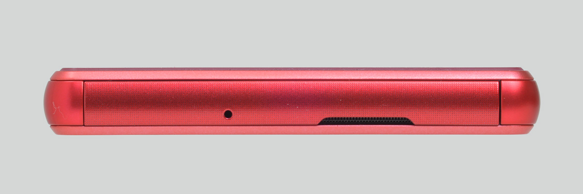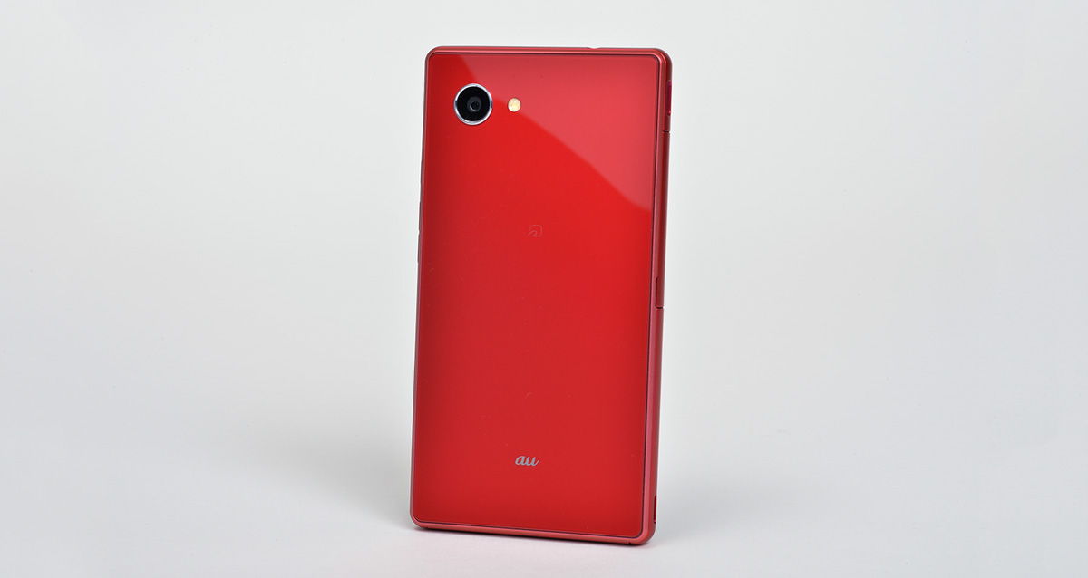 ボディ表面処理は周囲の側面部分が少しマットな触り心地で(サファイアとブラックのみ。スカーレットとホワイトは光沢)、背面は光沢のあるクリア仕上げとなっている。ボディカラーはブラック、サファイア、ホワイト、スカーレットの4色がラインアップされており、幅広いユーザーの好みに応えられる印象だ。その他のパーツのレイアウトとしては、背面側にメインカメラ、前面側にサブカメラ、右側面に電源キーと音量キー、左側面にau ICカードスロットとmicroSDメモリーカードスロット、microUSB外部接続端子、上部側に3.5φステレオイヤホン端子を備える。
