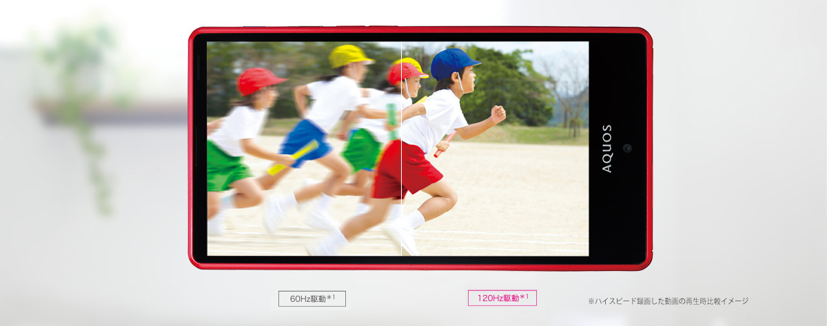 通常のスマートフォンのディスプレイは、60Hz駆動。つまり、1秒間に60回、画面が書き換わっている。対してSHV33は倍の120Hz駆動。これは、画面描画のなめらかさが倍になることを意味する。ブラウザなどで画面を勢いよくスクロールしても、文字や画像といった内容がブレにくく、くっきり見やすいので、操作性が飛躍的に向上にする。