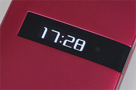 ディスプレイは約2.9インチのワイドQVGA液晶を搭載するが、表示されるテキストやアイコン、グラフィックはいずれも視認性が考慮された大きなものが採用されている。それもむやみに文字だけを大きくしたという印象ではなく、見やすさと美しさのバランスがしっかりと考えられている。トップパネルにはサブディスプレイとして、約0.7インチの有機ELディスプレイが搭載されており、日時や着信の情報などが表示される。