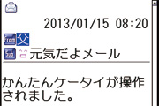 ところで、WX02SHのような機種は、前述のように、本誌読者のような実働世代の人が自分の親や祖父母といった世代の人に持ってもらうようなケースが多いが、持たせたのはいいものの、その後、まったく使ってくれないということのないように、簡単に使うための安心機能も充実している。たとえば、1日に1回、WX02SHを操作したとき、あらかじめ登録した家族や友人に自動的にメールを送る「元気だよメール」、あらかじめ指定した連絡先からの受信メールを開くと、読んだことを知らせる「読んだよメール」などがそうだ。そして、万が一のとき、周囲に知らせるための緊急ブザーも本体右側面に備えており、サイドキーを長押しすることで、大きな音を鳴らして、周囲に緊急事態を伝え、登録した家族などの連絡先に電話と周辺地図を示したメールを送る「緊急ブザー」機能も搭載されている。