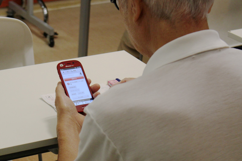 講座に来ていた方々は皆スマホに興味があるシニアの方々なのはもちろんだが、スマートフォンを使ってみたい理由としては、「友達や家族とLINEがやりたい」「子供から勧められた」「地図検索がしたい」といった内容が多かった。また、ケータイを使っている方の他に、すでにスマホを使っている方という方も何人か来ていた。スマホを使っている方の中には、現在はシニア向けではない普通のスマホを使っている人もおり、「操作がわかりにくい」「画面が小さくて読みにくい」「すぐ反応してしまって操作しにくい」などの点でストレスを感じているということだった。