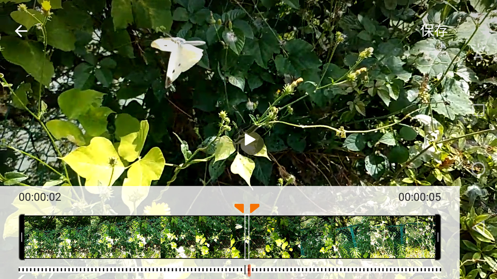 スローモーション動画の編集画面。スローモーションにしたい時間帯を指定して保存するだけ