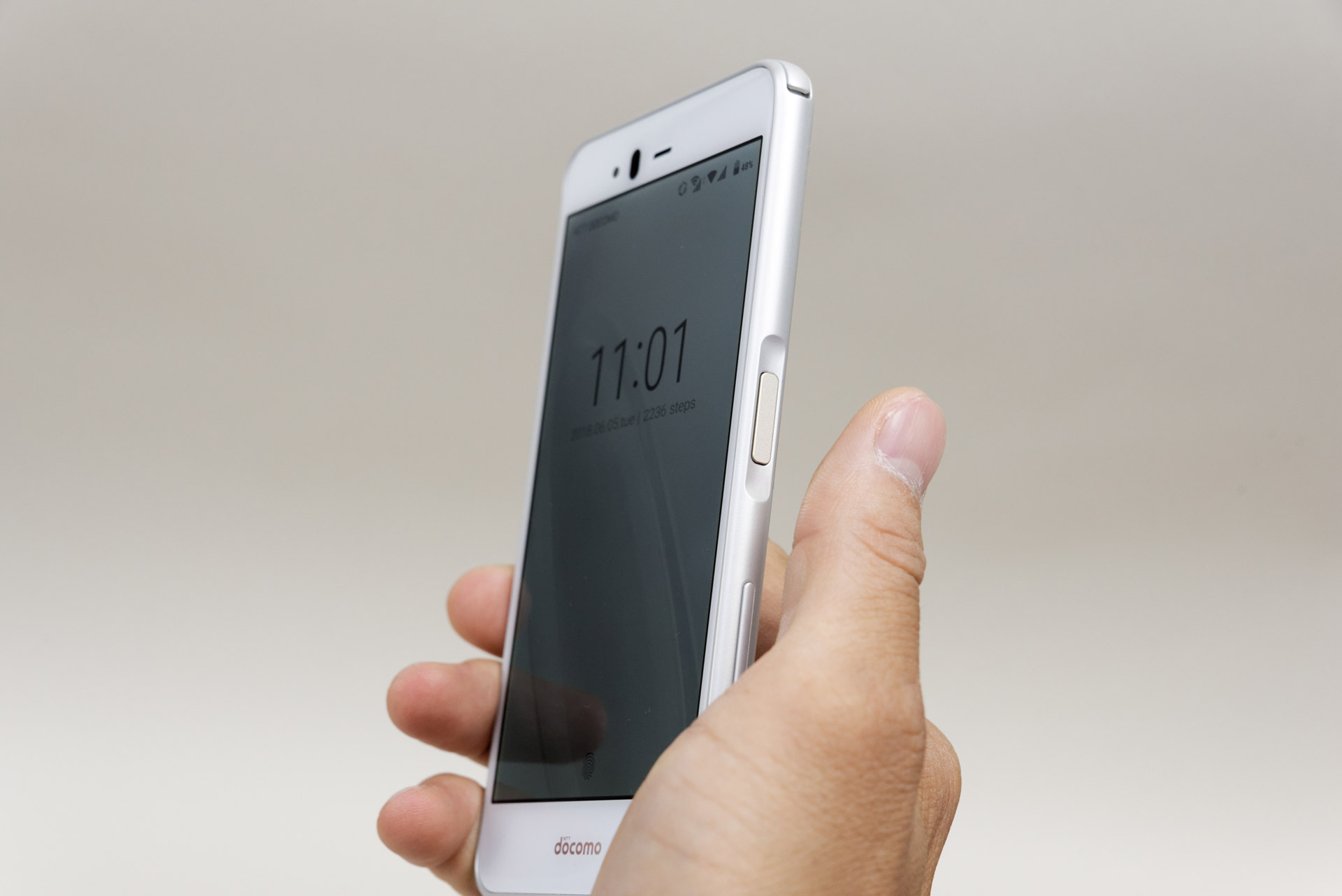 泡タイプのハンドソープで洗えるので、常に清潔に保てる 防水のほかに高い防湿性能も備えている。お風呂スマホも問題なし 1.5メートルの高さからコンクリートに落下させても画面が割れないことを確認 よく見ると上部と下部のエッジがわずかに立ち上がっている。これにより画面側から落下しても傷や割れを防ぐことができる 側面に備える電源ボタン。これがExliderだ ロック解除用の指紋センサーとして使える アプリのスクロールや拡大・縮小操作も楽に Super ATOK ULTIASで快適に日本語入力