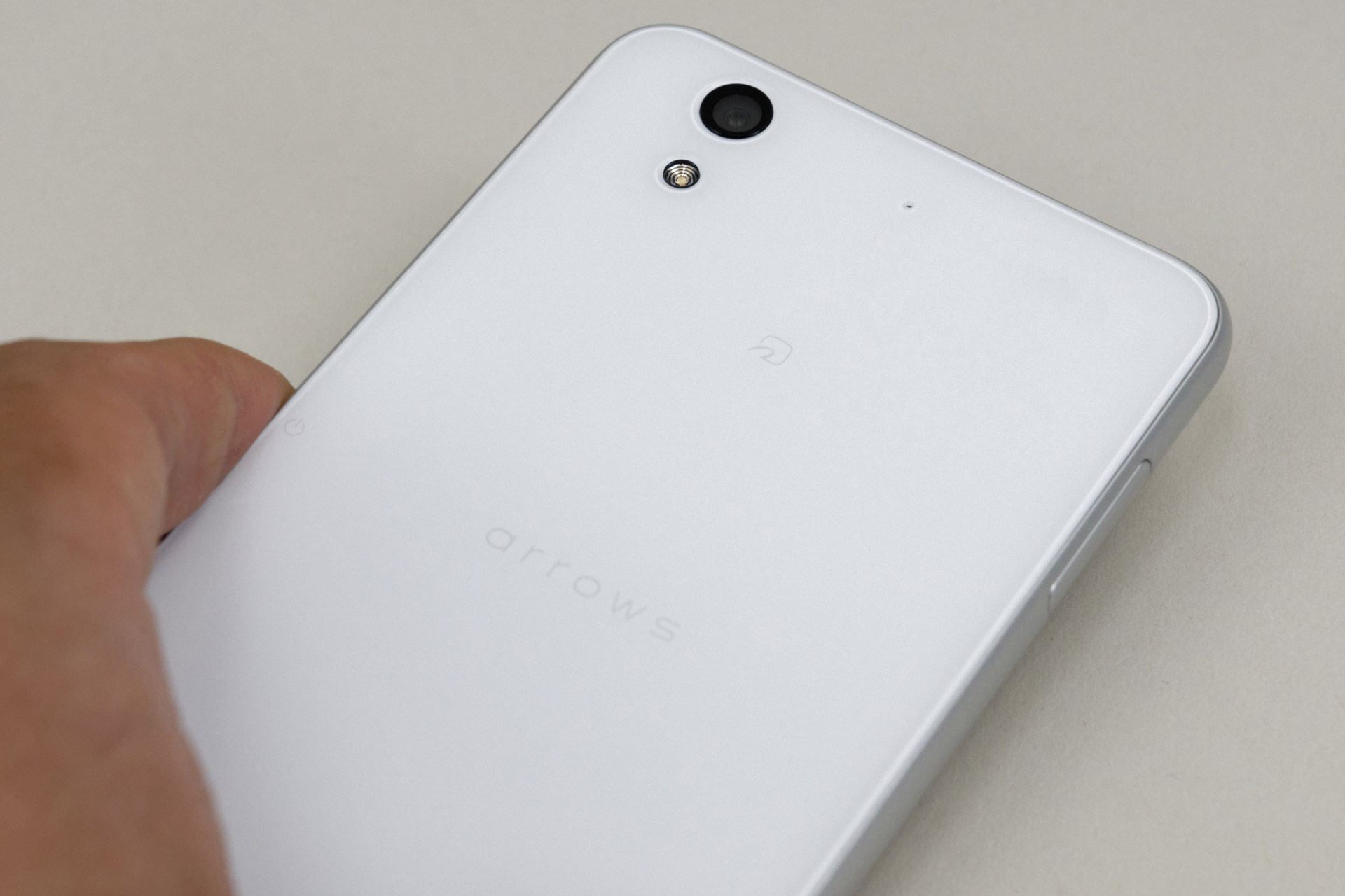 ストラップホールが用意。他のスマートフォンではあまり見られなくなったが、arrowsはしっかり用意している