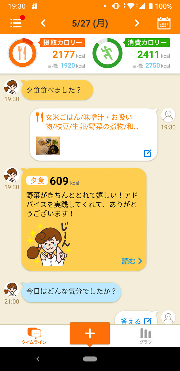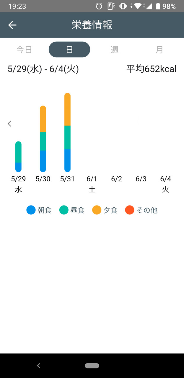 2日目、面倒な食事の記録はタッチだけでOK