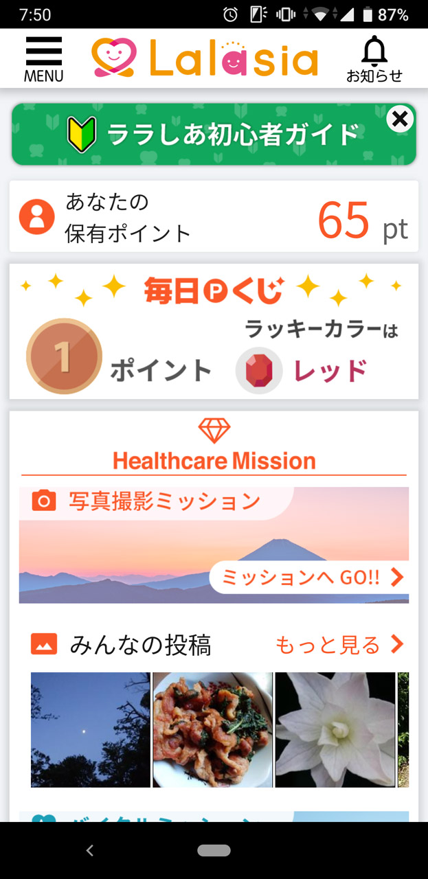 ただ、体重というのは常に変動するもの。長期的に見ていく必要もある、ということもコラムを読んで学ぶことができた。実にため(励まし)になるコラムではないか! しかも読んだだけで、あるいはララしあを毎日開くだけで、ポイントまでゲットできるのだ。