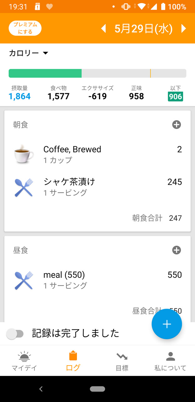 ●念のため摂取カロリーも記録する