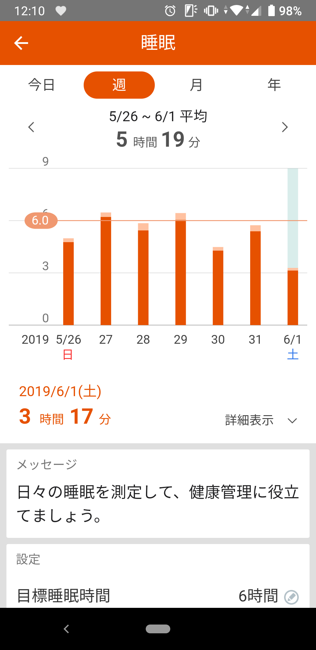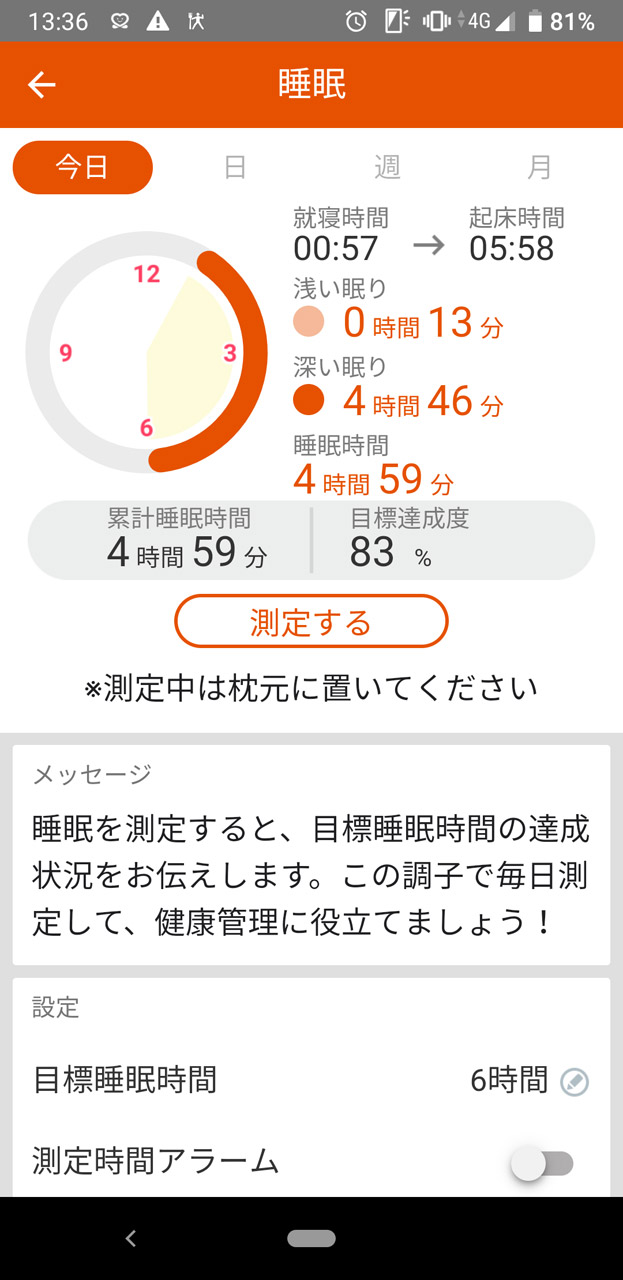 ●毎日睡眠時間を計測する(目標は6時間)
