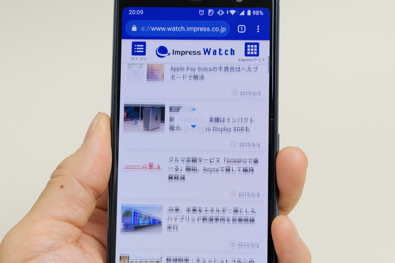 ところで、こうしてアプリをいろいろ操作していると、ディスプレイの見やすさ、タッチに対する反応の良さが今までのarrows Beと比べても際立って良いと感じる。1080×2220ドットに高解像度化、縦長化して、ひと回り大きくなった5.6インチの有機ELディスプレイは、食事写真をきれいに映し出すし、細かい文字も精細に表示してくれる。何より縦長になったことで、Webサイトやアプリの見える範囲が広がったのがうれしい。動作も軽快で、オクタコアのCPUや3GBのメモリが必要十分なパフォーマンスを発揮しているようにも思う。