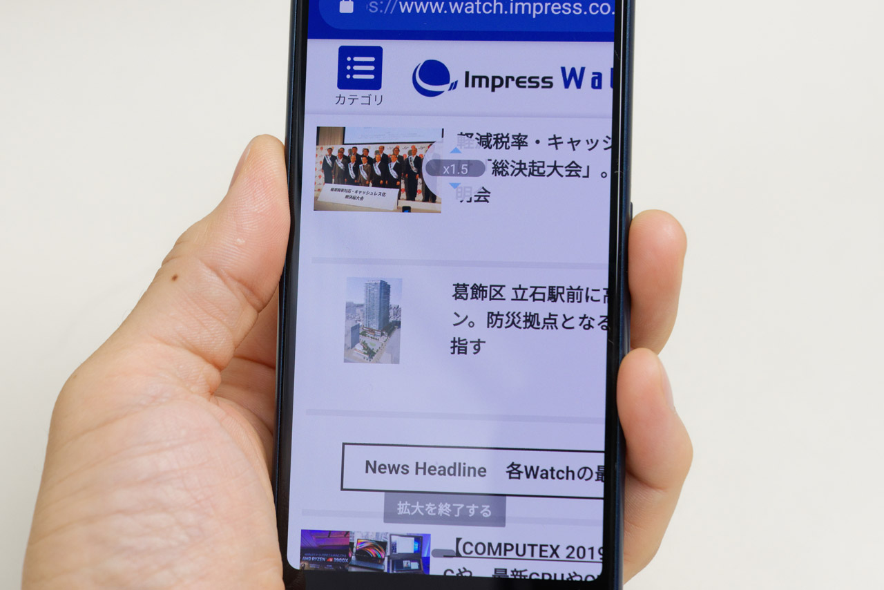 指紋センサーに指を置いて少し上下に動かすとスクロール。さらに縦だけではなく左右横のスクロールも可能 指紋センサーに長めに指を置くと画面が拡大する