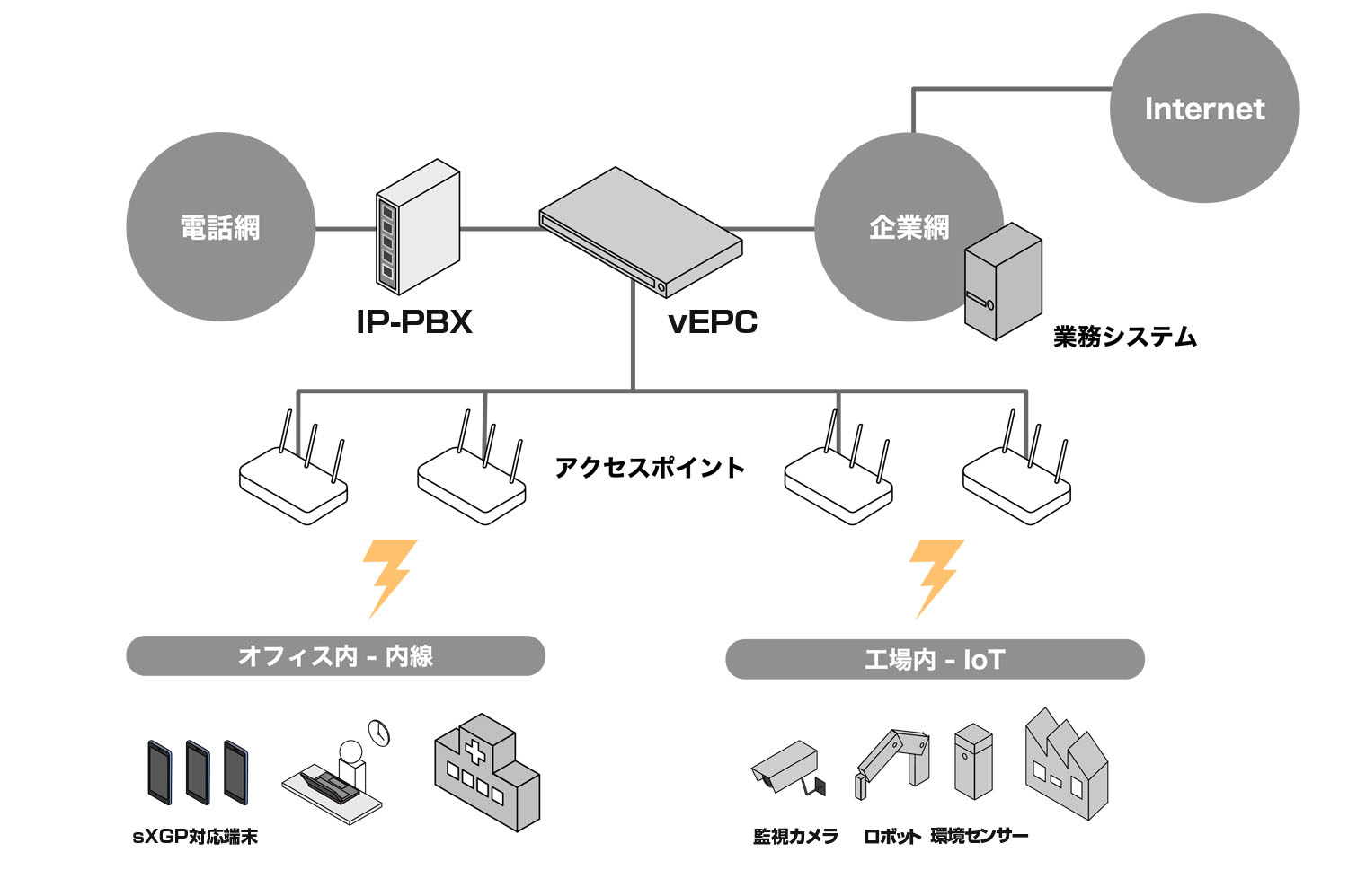 イメージとしてはWi-Fiを思い浮かべるとわかりやすい。Wi-Fiでは利用したい場所に自前でアクセスポイントを設置し、コントローラーなどの機器で接続情報を自ら管理するが、これと同じようにカバーしたいエリアにsXGP対応のアクセスポイントを設置したり、これらを制御するためのコントローラーを構築したりすることで、LTE通信が可能な環境を構築できる。