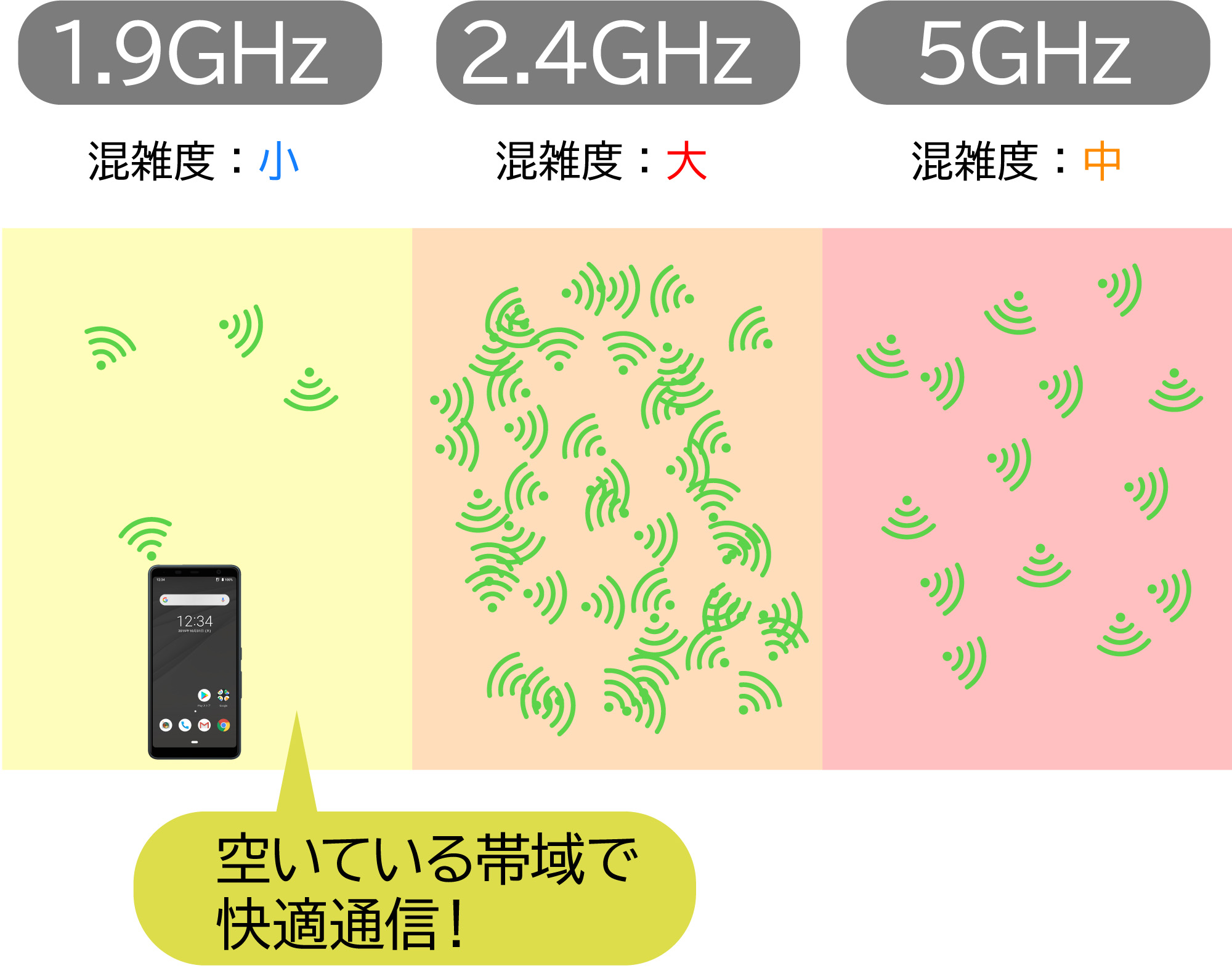 実は、Wi-Fiなどで一般的な2.4GHz帯は、もはや空いているチャネルを探すことの方が困難なほど混雑しているうえ、5GHz帯もWi-Fi 6などの広帯域(160MHz幅)を占有する技術の登場で電波の干渉を避けることが難しい状況になってきている。