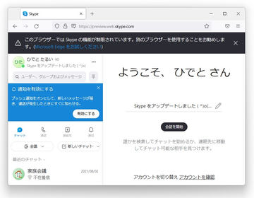「Skype for Web」が「Firefox」でも利用可能に ~「Skype 8.78」のプレビュー版でテスト中