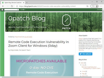 Windows版「Zoom」v5.1.3が公開、旧版Windowsで任意コードが実行できる欠陥に対処