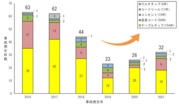 テレワークの普及により、テーブルタップや延長コードによる発火事故が増加