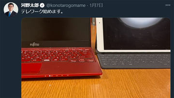 河野大臣がテレワークを開始。富士通製モバイルノートとiPadを活用