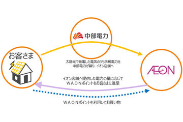 家庭の太陽光発電の余剰電力がWAONポイントになる。中部電力とイオン