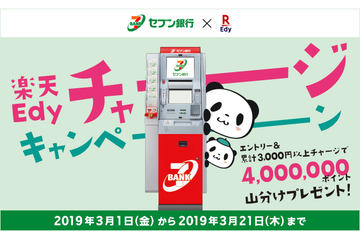 セブン銀行ATMでEdyチャージキャンペーン。400万ポイント山分け