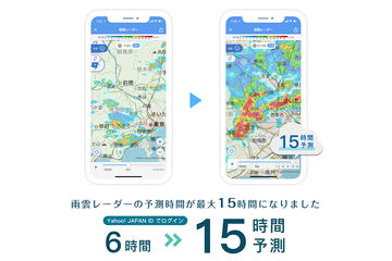 Yahoo!天気アプリ、雨雲レーダーの予測時間を15時間に拡大
