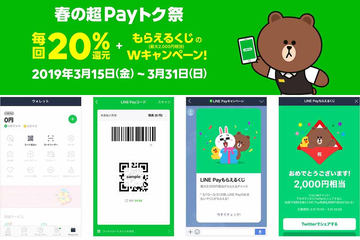 LINE Pay、3月の20%還元はQUICPayも対象。「春の超Payトク祭」