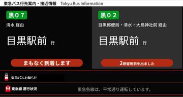 バス停で東急線運行情報を表示。東急バスが鉄道連携のバス接近表示器