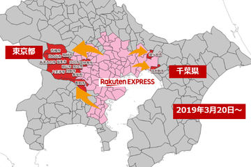 「Rakuten EXPRESS」の配送エリアが八王子など東京と千葉で拡大