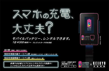 京急品川駅と羽田空港両ターミナル駅にスマホ充電器レンタル「充レン」