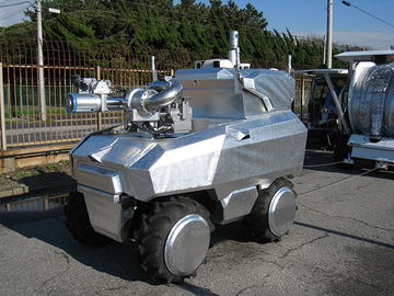 三菱重工、自動運転消防ロボット。放水ロボとホース延長ロボが連携